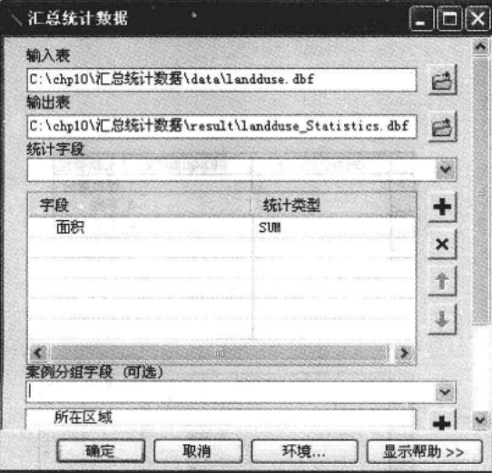 (2)在【汇总统计数据】对话框中,输入 【输入表】数据(位于"..\chp10\汇总统计数据\data"),指定输出表的保存路径和名称。