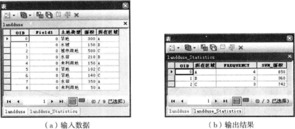 (1)在ArcToolbox中双击【分析工具】→【统计分析】→【汇总统计数据】,打开【汇总统计数据】对话框,如图所示。